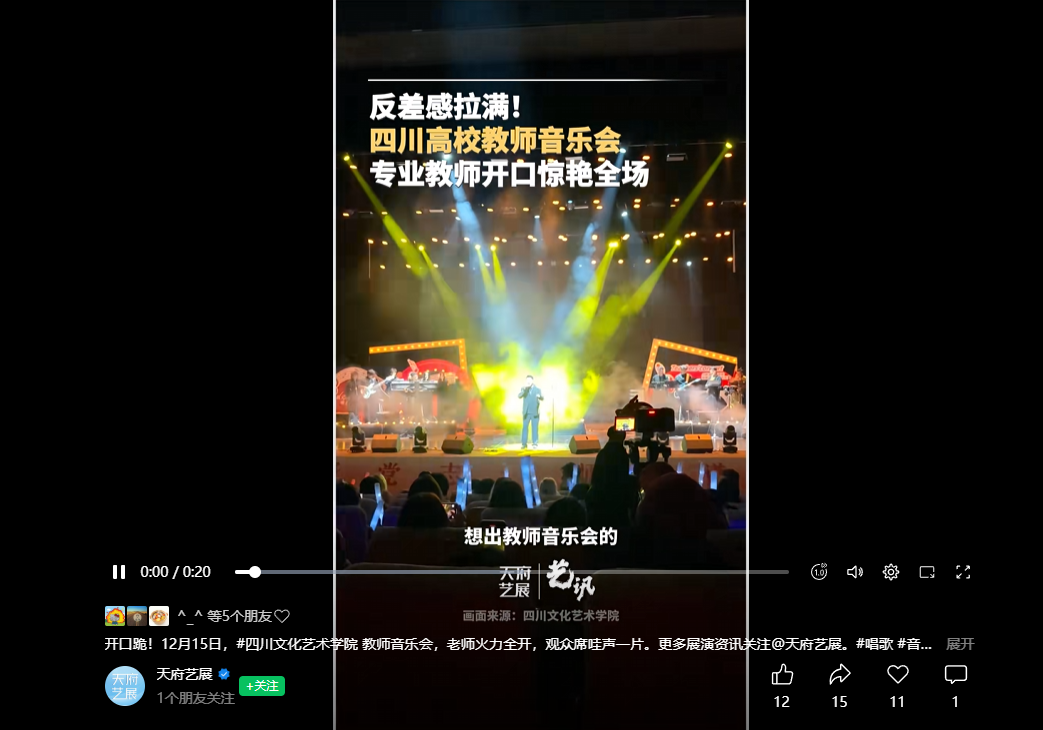 青蜂侠: 四川文化艺术学院 #教师登台献唱学生尖叫欢呼 (toutiao.com)