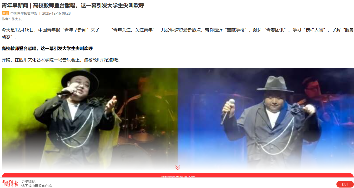 青年早新闻 | 高校教师登台献唱,这一幕引发大学生尖叫欢呼 (cyol.com)