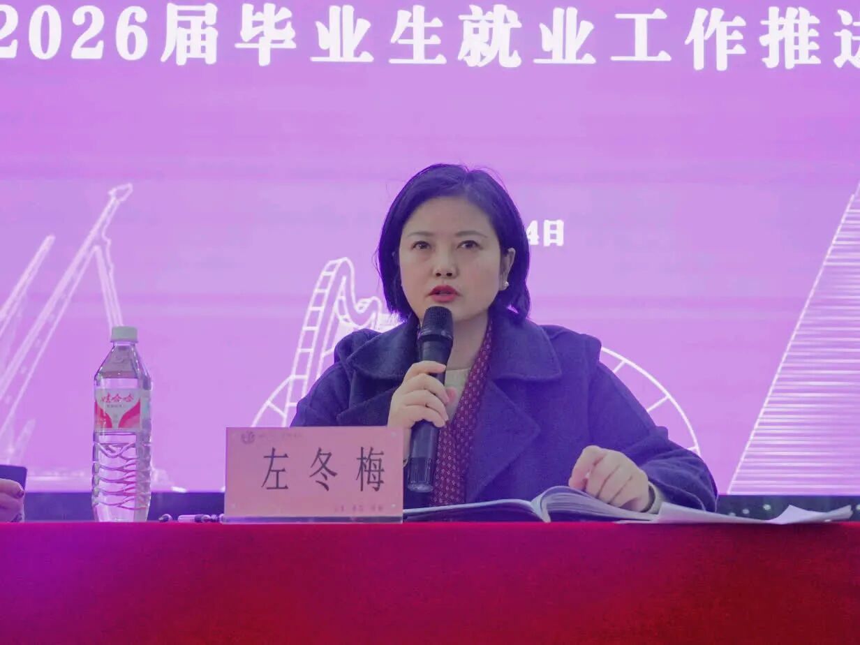 校党委书记、省政府督导专员左冬梅在讲话中强调,高校毕业生就业是关乎国家发展、社会稳定和民生福祉的重要政治任务。当前,2026届高校毕业生规模预计再创新高,就业工作面临“供需双重挤压”等复杂挑战,必须从政治高度深刻把握就业工作的新使命、新要求。她指出,我校2025届毕业生就业落实率实现同比稳步提升,但部分学院、专业的就业工作仍存在短板,落实率不均衡的问题较为突出,全校上下必须保持清醒认知,进一步增强做好就业工作的责任感与紧迫感,切实推动就业工作整体水平再上新台阶。